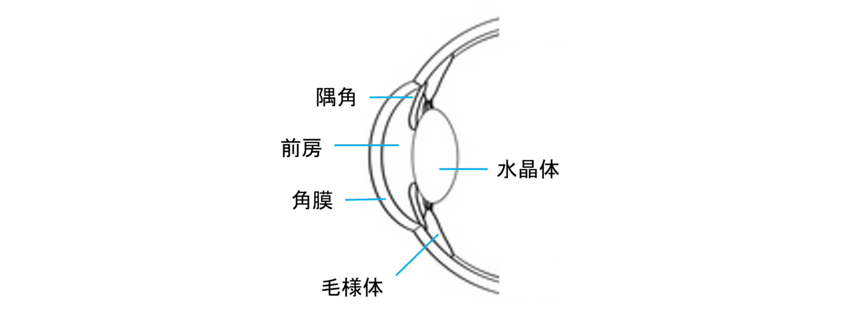 眼圧の上昇は、前房といわれる領域に存在する液体(前眼房水)の流れが悪くなることで起こります。前眼房水は、隅角と呼ばれる出口から排出されますが、この隅角が閉塞したり狭くなることによって眼圧の上昇が起こります。眼圧が上がると眼の充血や角膜の白濁、痛みによるしょぼつき等の症状がみられます。